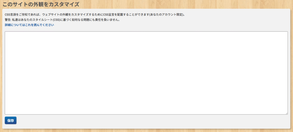 拡張の設定では、ボードゲームアリーナの画面デザインのカスタマイズを行うCSSの設定を行なえます。