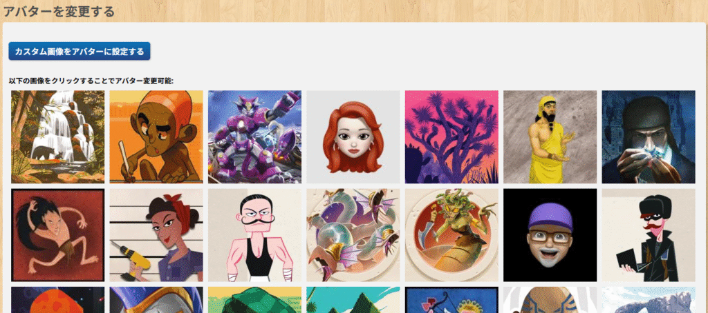 BGAで用意されている画像をクリックすることでアバターの画像を変更できます。