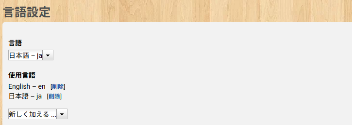 | 使用言語 | 自身が使用できる言語を設定します。(複数選択可) ※前述しましたが『English – en』の追加しておくことをおすすめしています。 |