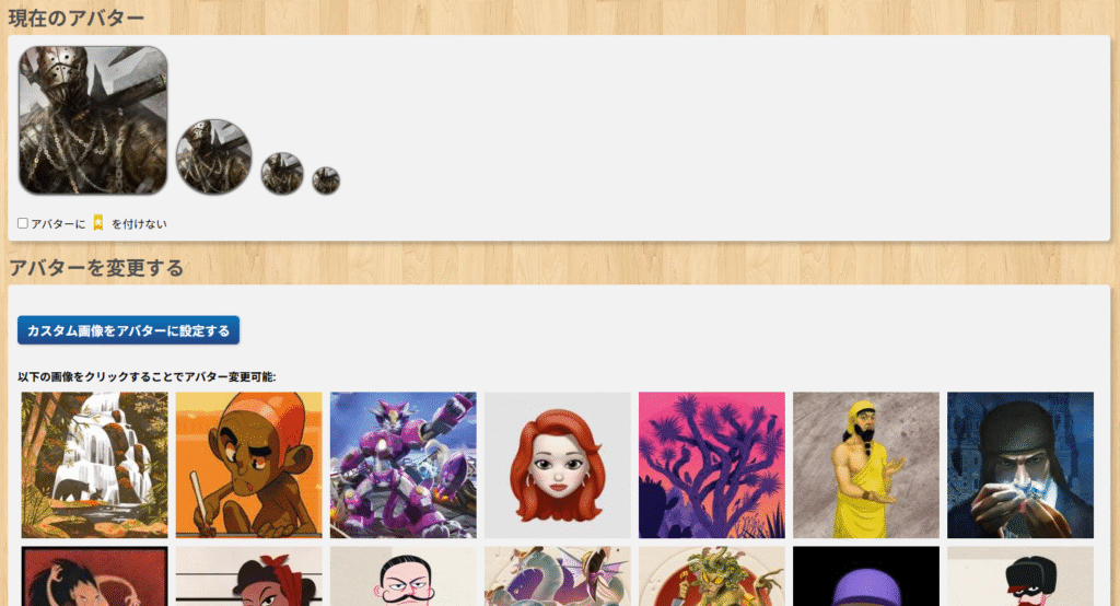 アバターの設定では、ゲーム中に自分のユーザー名と一緒に表示されるアバター(画像)の設定を行うことができます。