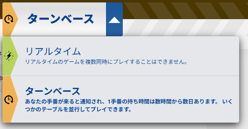 中央のメニューから、『リアルタイム』と『ターンベース』の2種類からテーブルを選択します。