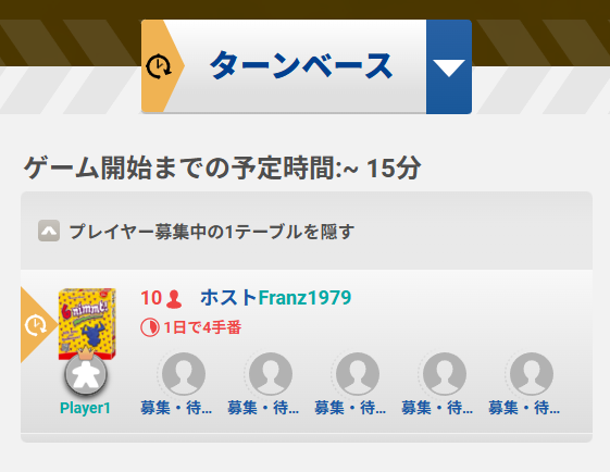 テーブル設定では、プレイ人数や手番ごとの持ち時間(プレイ速度)を調整できます。