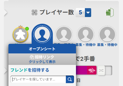 テーブルの人物アイコンを押すことで、フレンドを招待することができます。(招待リンクの発行して、リンクからの招待も可)