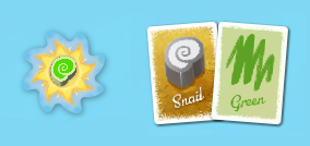 ゲーム開始時、形状カードと色カードが1枚ずつ公開され、ボード上から該当する貝殻を太陽タイルの上に配置し、その位置にバケツを配置します。