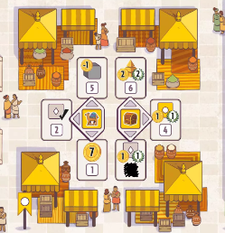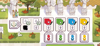 塗り潰すことで記載されている勝利点を獲得でき、最初に集会所を完成させたプレイヤーは、追加の勝利点を獲得できます。