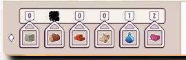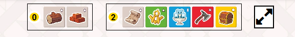 塗り潰されたスペースは生産している資源を示し、建設コストの支払いに使用します。