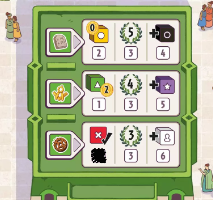 建物を1つ完成させると、選択可能なボーナスを1つ塗りつぶし、即座にその効果を得ます。–