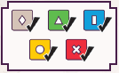 | 灰(3個) | 緑 | 青 | 赤 | 黄 | 紫 | 黒 | 白 | ||