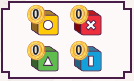 | ・ | ダイス:10個(灰3個、青1個、赤1個、黄1個、緑1個、白1個、黒1個、紫1個) |