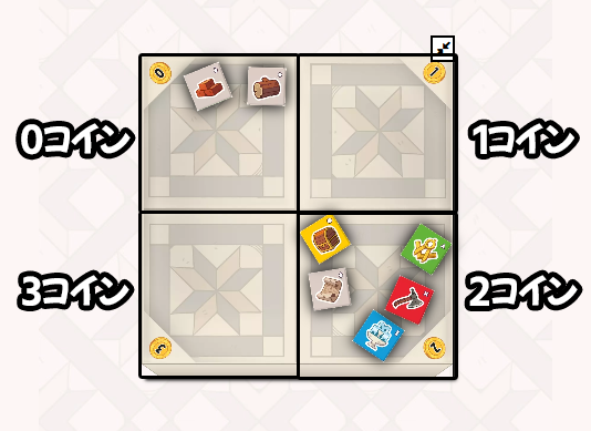 その後フタを開け、ダイスとその位置(=コスト)を公開します。
