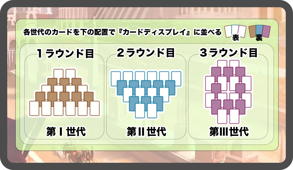 ラウンドが増えるごとに次の世代カードを指定された形で配置していきます。