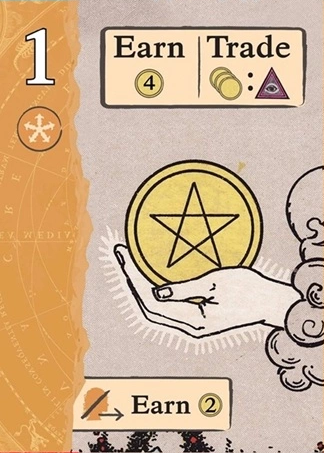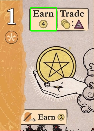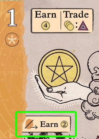 稼ぐアクションを行った場合、自分のタブローに置かれている稼ぐ/交換カードに記載されているコインを獲得できます。