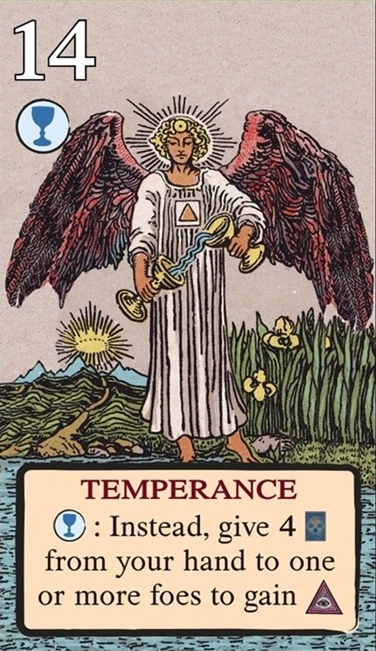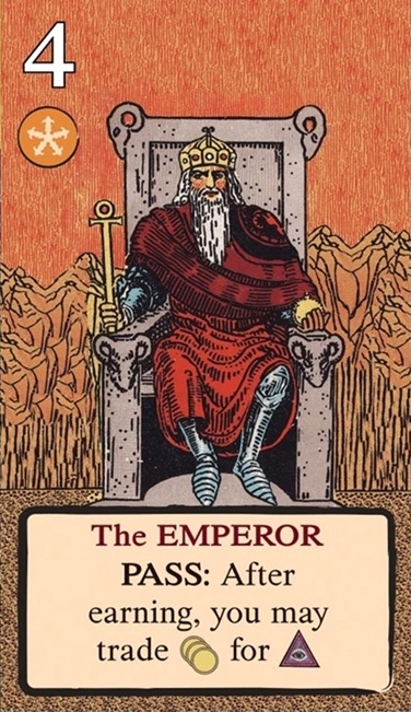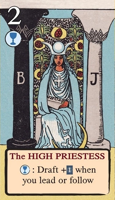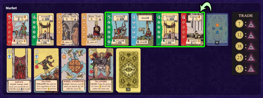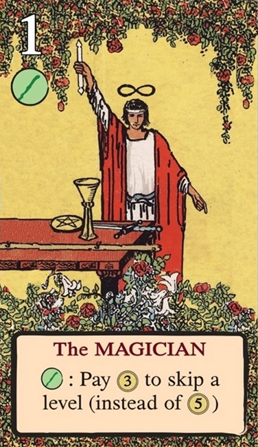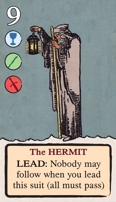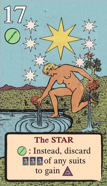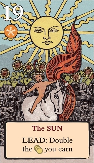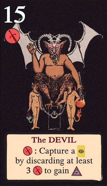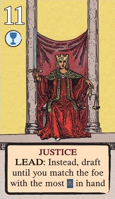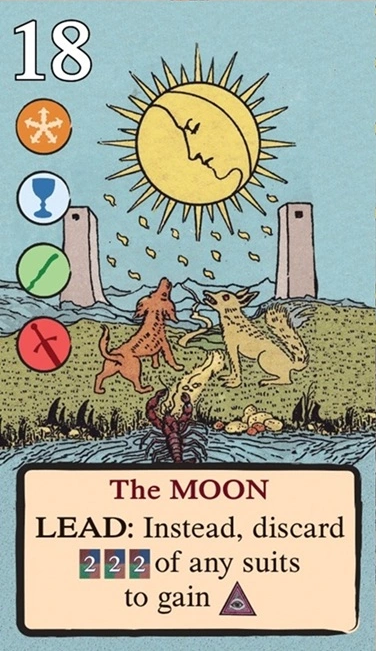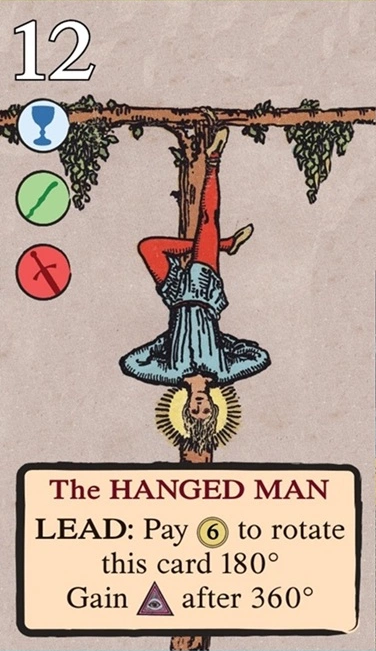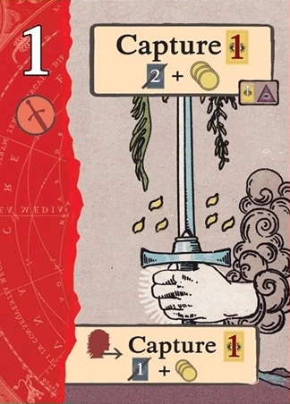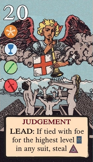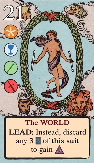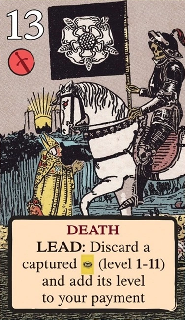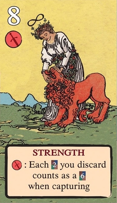 このスートをリードするとき、自分の獲得済みタロット(レベル1〜11)を1枚破棄し、そのレベルを捕獲のコストに充当できる。