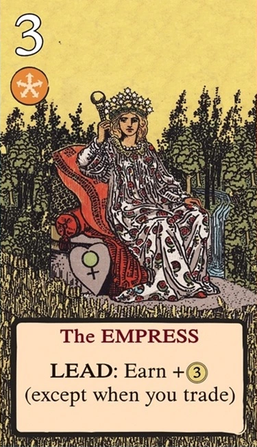 このスートをリードするとき、稼ぐアクションで獲得するコインが+3枚(トレードを選んだ場合は適用されない)