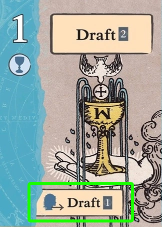 ドラフト(リード・フォロー問わず)のとき、通常アクションの代わりに手札から4枚を1人以上の相手に配ることで運命トークンを1個獲得