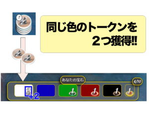 同じ色の『宝石トークン』を2つ獲得することができます。