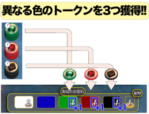 異なる色の『宝石トークン』を3つ獲得することができます。