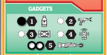 | 秘密 秘密の部屋に移動すると得点を獲得できます。取れなかった秘密はアジトの持ち主の得点となります。 ・フィルム:得点:10 ・フロッピー:得点:20 ・マクガフィン:得点:30 | |||