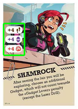 | ・ガジェット最多 | 最も多くガジェットを所持しているプレイヤーは−20点のペナルティになります。 (※同点の場合は全員が対象) |