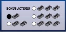 | ・ | 部屋の移動 1部屋移動するごとに移動力を1消費します(〇を塗りつぶす) ※壁は通過できません ※斜め移動はできません |