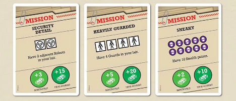 自分のアジトを守りながら、他プレイヤーのアジトから秘密を奪い、最も多くの資産(得点)を獲得することが目的です。