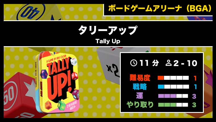 『タリーアップ(Tally Up)(BGA)』の遊び方・魅力をご紹介!