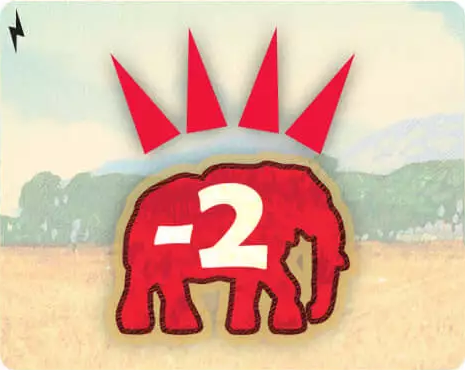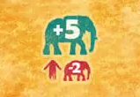 ![]() | 自分が +5 休息中のゾウを得る。 他プレイヤー1人は −2(ゾウが0〜1個でも選択可)。 |