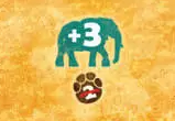 ![]() | 自分が +3 休息中のゾウを得る。 その後、荒地を無視してゾウを1個追加配置できる。 |