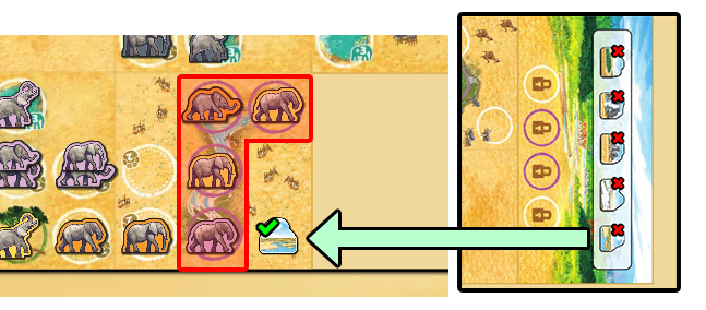| ・ | ゾウを1体配置する(荒地のペナルティを無視) |