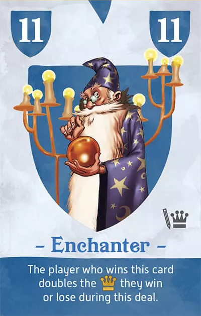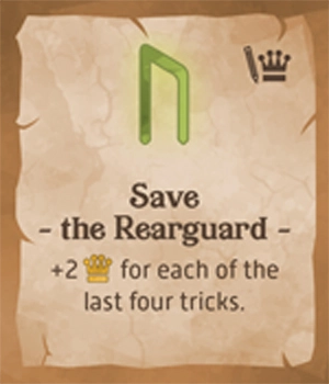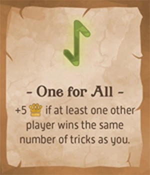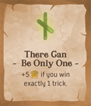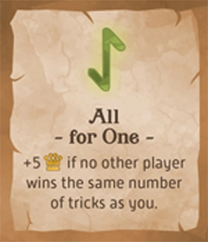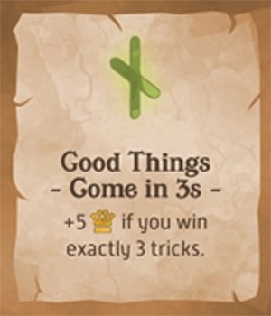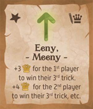 次のトリックに勝ったプレイヤーに勝利点+3を与える。このカードは最終トリックでプレイされた場合には効果がない。