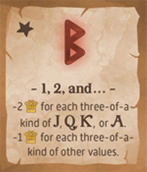 全プレイヤーの手札がすべて無くなったら、このラウンドで使用された特殊カードおよびクエストタイルの得点条件に従って、各プレイヤーは得点を獲得します。