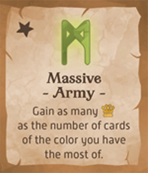 獲得したカードが最も少ない色の枚数に等しい勝利点を得る。