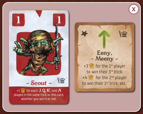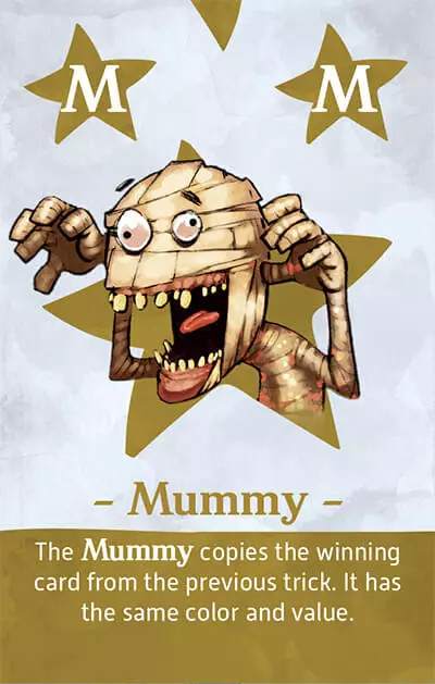 ミイラは前のトリックの勝利カードをコピーする。同じ色と値を持つ。ラウンドの最初のトリックではプレイできない。