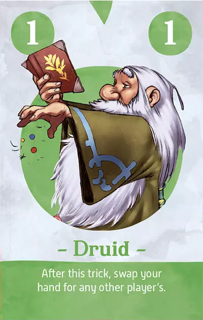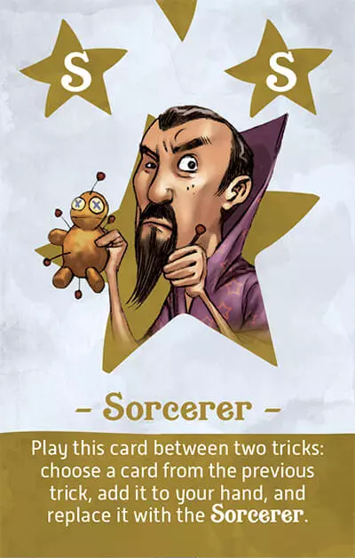 このカードを2回のトリックの間にプレイしてください:前のトリックからカードを1枚選び、それを自分の手札に加え、代わりにソーサラーを置く。