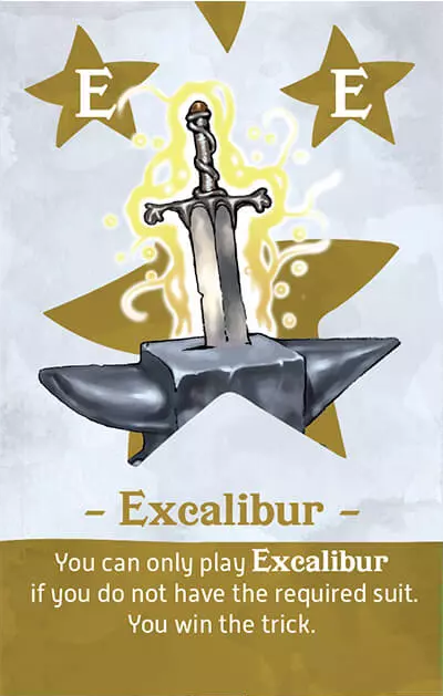 必要なスーツを持っていない場合に限り、エクスカリバーをプレイできます。あなたはトリックに勝ちます。