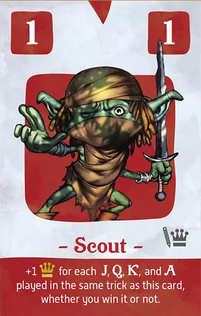 勝敗に関わらず、このカードと同じトリックでプレイされたJ,Q,K,A1枚につき勝利点+1