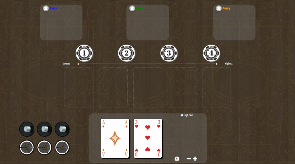 各プレイヤーに配ったハンドの強さの順番を全員で予想(チップで示した順位)した順番と一致すれば『チャレンジ成功』、1人でも外れれば『チャレンジ失敗』となります。各プレイヤーは手札の強さを、チップを使って他のプレイヤーに伝え合っていきます。
