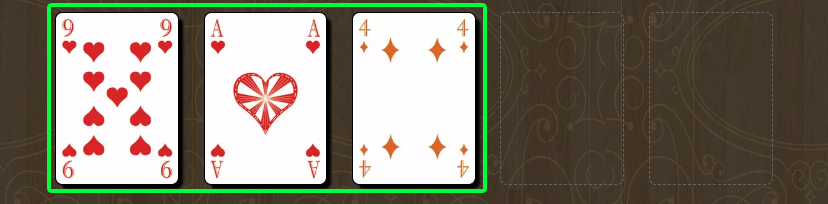プレイヤーの一人が山札からカードを3枚めくり、表向きにして山札の隣に並べます。