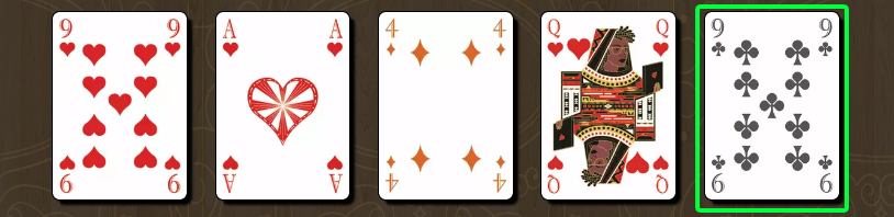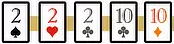 ラウンド1でホールカードを配って確認した後、全員が手札の数字の合計を宣言します。ただし、絵札(J.Q.K)はそれぞれ「10」、Aは「11」として計算します。9 詐欺師(Con Artist)