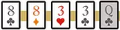 ラウンド2で公開された3枚のコミュニティカードに、絵札(J.Q.K)が1枚もなかった場合、ラウンド1で最も強い白チップを取ったプレイヤーは、自分のホールカードを裏向きですべて捨て、捨てた枚数と同じ枚数のカードを山札から引きます。8 停電(Blackout)