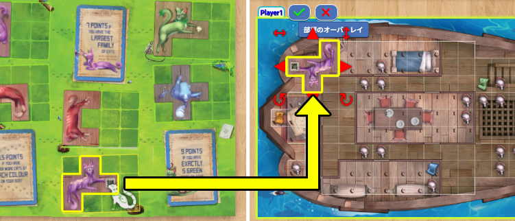 ボードへの配置ルールに従って、ネコタイルを自分のボードに配置します。
