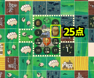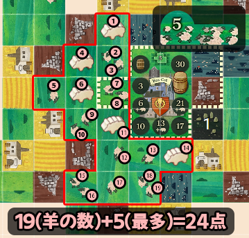 ゲーム終了時に「最大の羊群」マーカーを持っている場合は+5点。