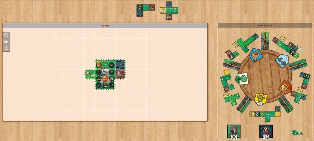 配置フェーズでは、タイルを選び、自分の場に配置します。