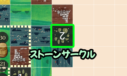 自分の場にあるストーンサークルの記載されている数字の合計が得点になります。