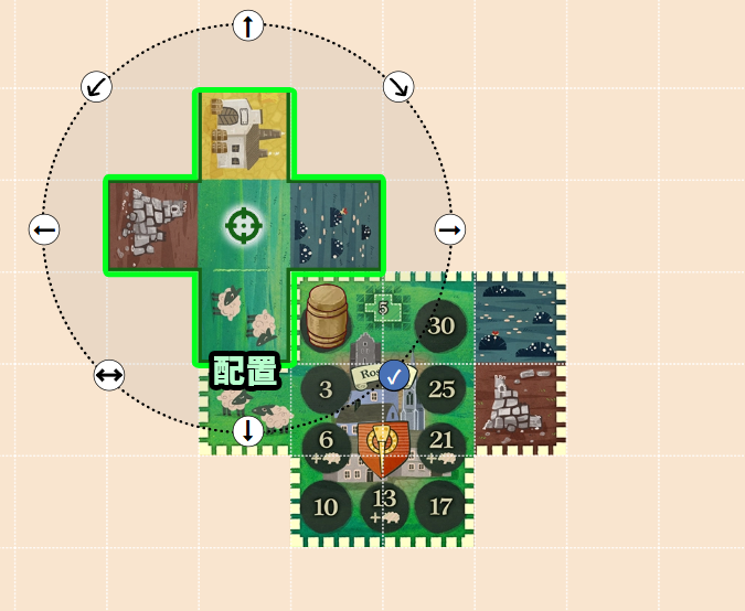 | ・ | 配置後、移動不可 一度配置したタイルは移動できません。 |