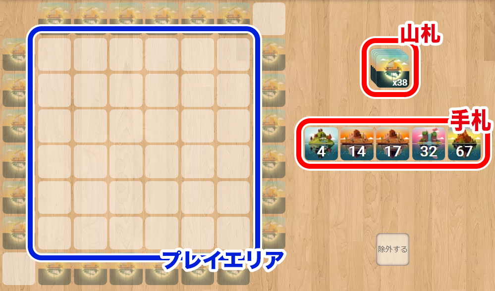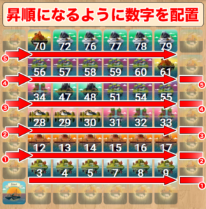『島カード』は必ず左下から右上に向かって数字が昇順になるように配置していきましょう。