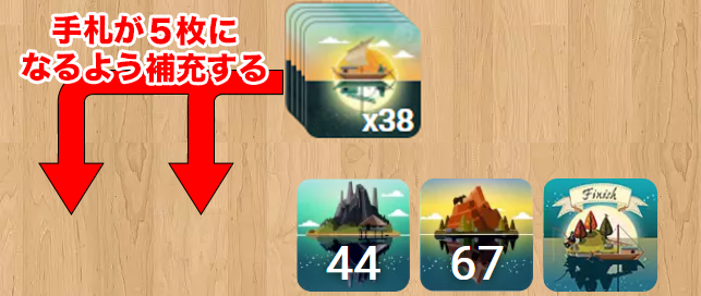 ❷ 手札を5枚になるように手札を引く