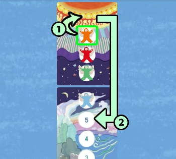 プレイ中、トリックに勝利すると駒は太陽に向かって上昇しますが、