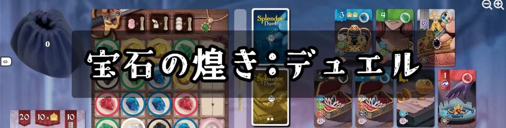 『宝石の煌き:デュエル』は、宝石を集めてカードを購入し、いち早く勝利条件を満たすことを目指す2人専用ゲームです。