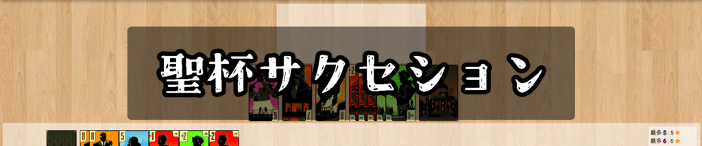 『聖杯サクセション』は、場に並ぶカードを巡って取るか、押し付けるかの判断を楽しむ2人用カードゲームです。